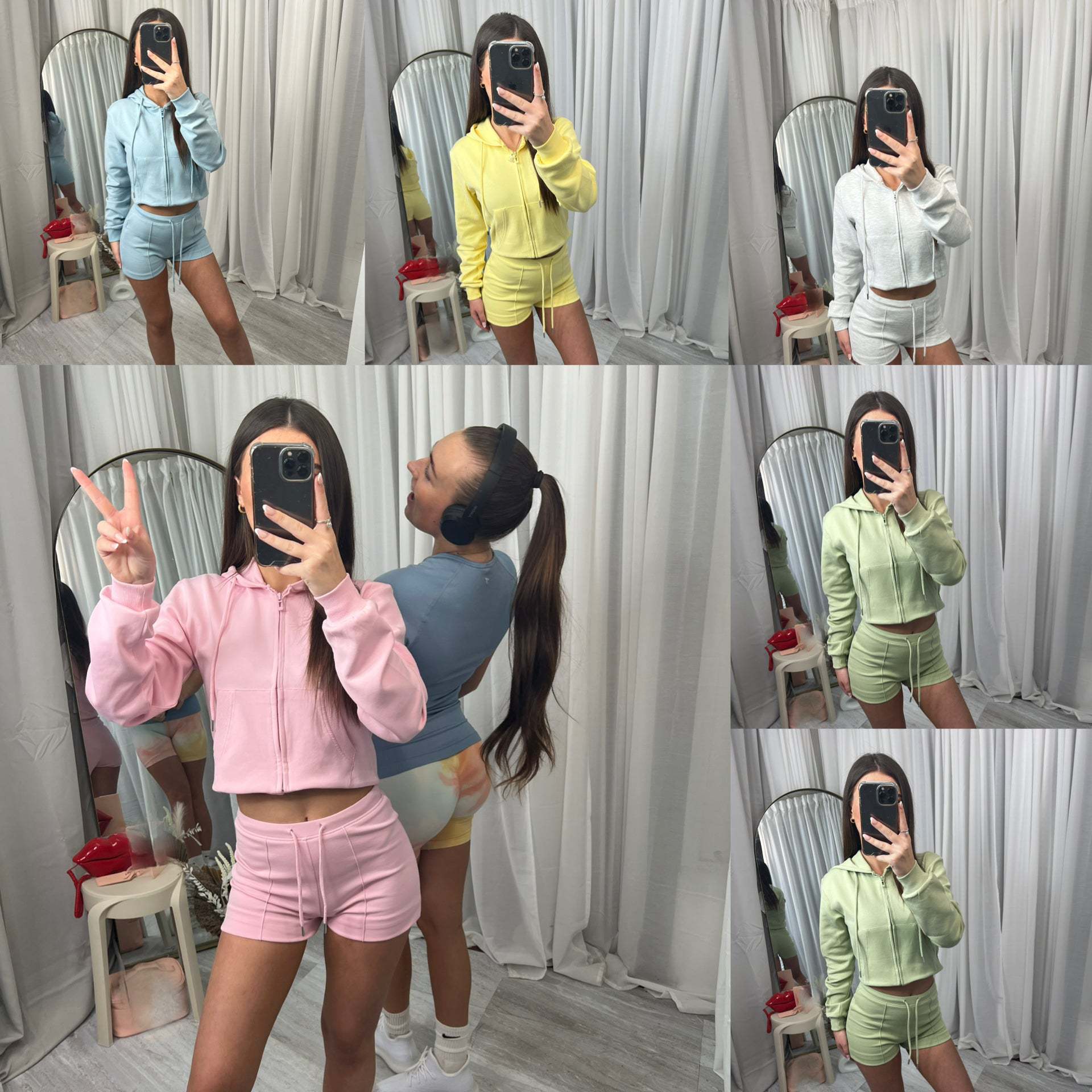 Womens Hooded Oversized Pocket Sweatshirt And Shorts Two-Piece Set